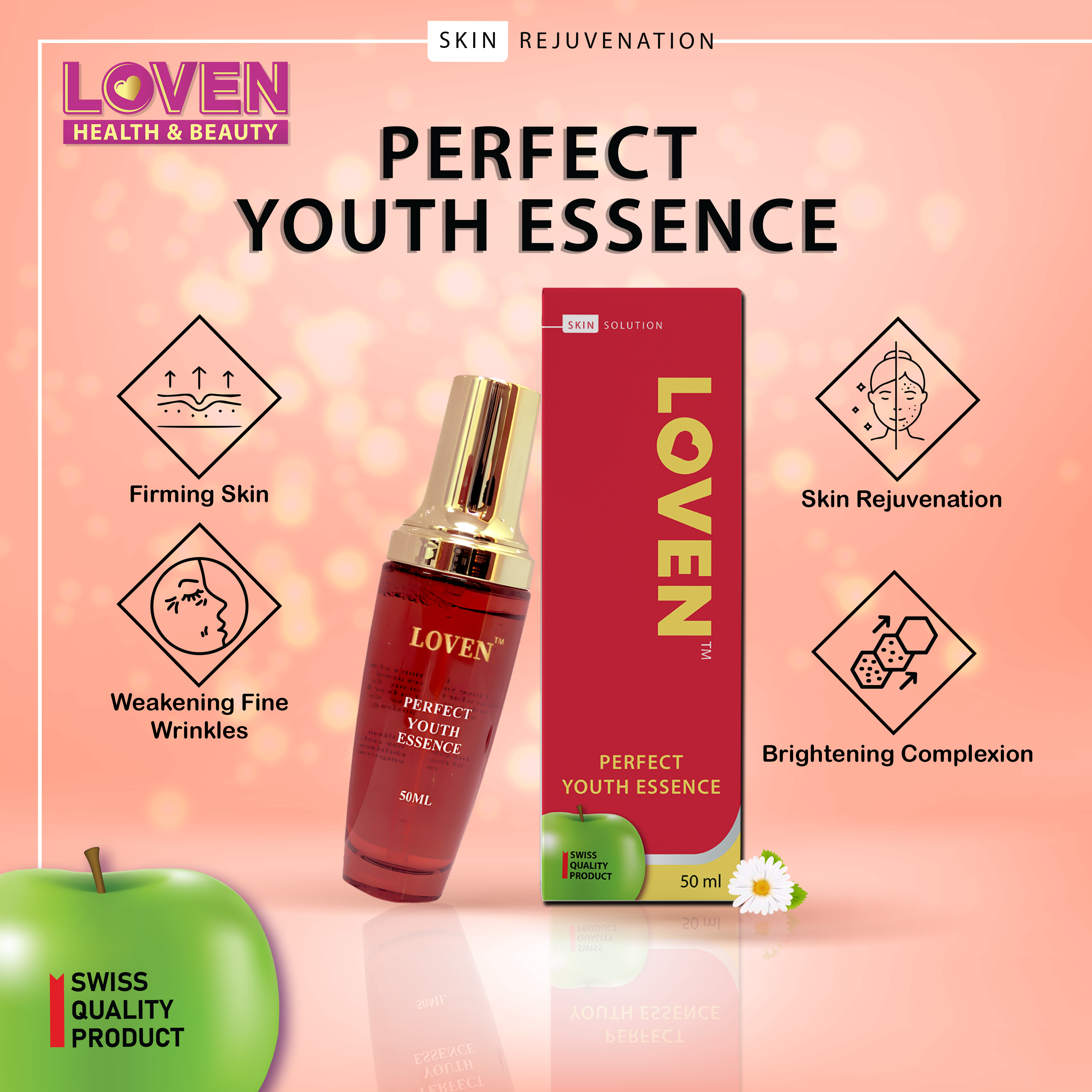 সুইজারলেন্ড এর উৎপাদনকৃত অ্যাপেল স্টেম সেল, টমেটো স্টেম সেল, চন্দ্রমল্লিকা ফুলের স্টেম সেল এর সংমিশ্রণে মালয়েশিয়ায় কসমেটিক্স ম্যানুফ্যাকচারিং ফ্যাক্টরীতে উৎপাদনকৃত লাভেন পারফেক্ট ইয়ুথ এসেন্স, যা ত্বকের কোষগুলিকে উৎসাহিত করে ত্বককে পুনরুজ্জীবিত এবং বয়সের ছাপের লক্ষণগুলির বিরুদ্ধে লড়াই করে আপনার সেীন্দর্য্যকে ধরে রাখতে সহায়তা করে।