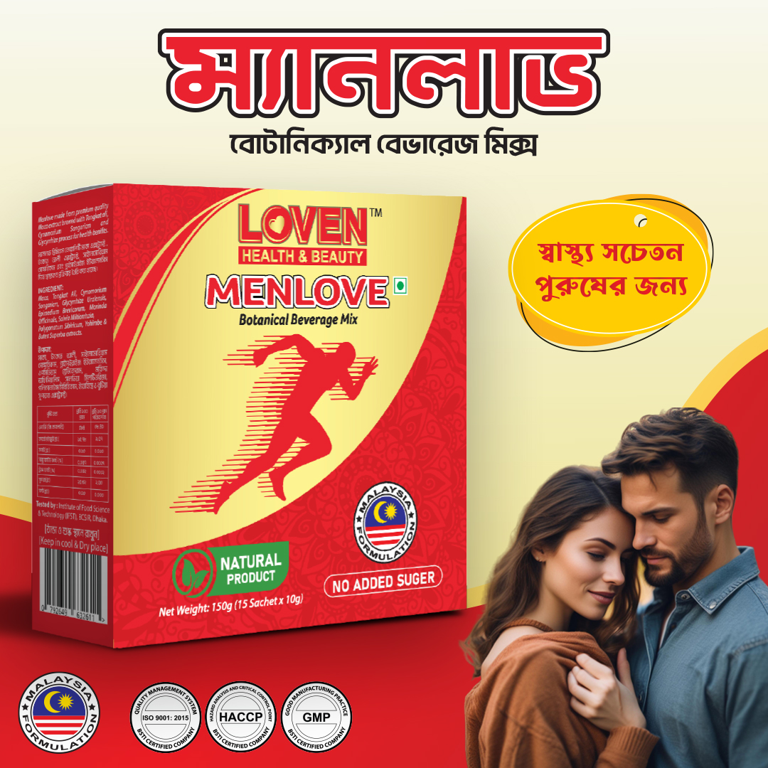 ম্যানলাভ বোটানিক্যাল বেভারেজ মিক্স, উচ্চ মানসম্পন্ন বিশেষ হারবাল এক্সট্র্যাক্টের সুষম মিশ্রণে বিশেষভাবে স্বাস্থ্য সচেতন পুরুষের জন্য তৈরি। এটি শারীরিক শক্তি, মনের প্রফুল্লতা ও দৈহিক সহনশীলতা বৃদ্ধি করতে সহায়তা করে।